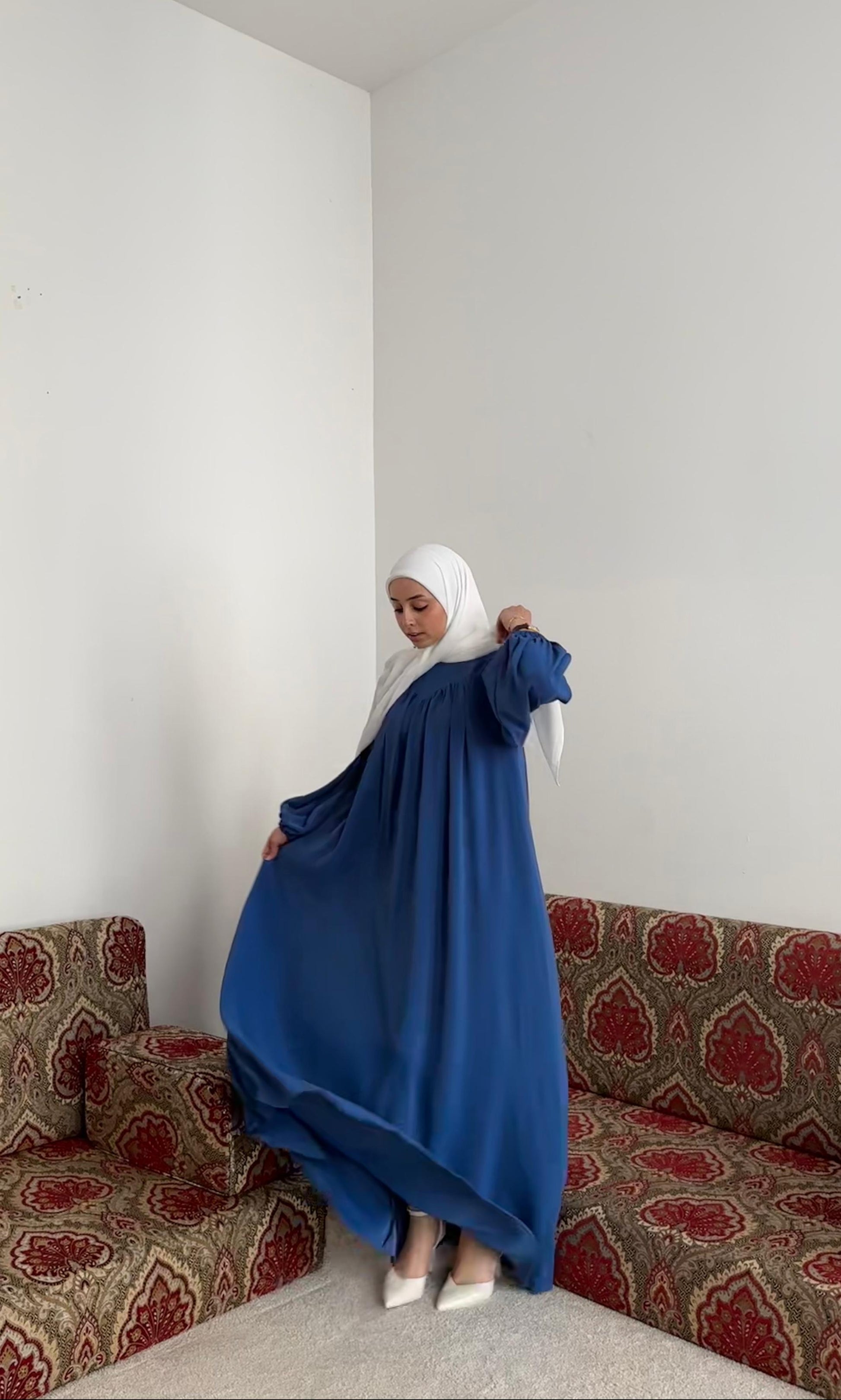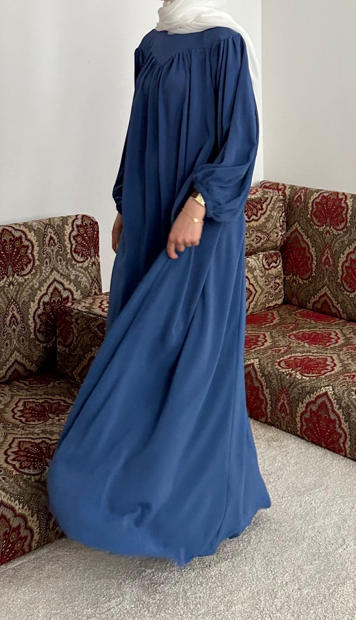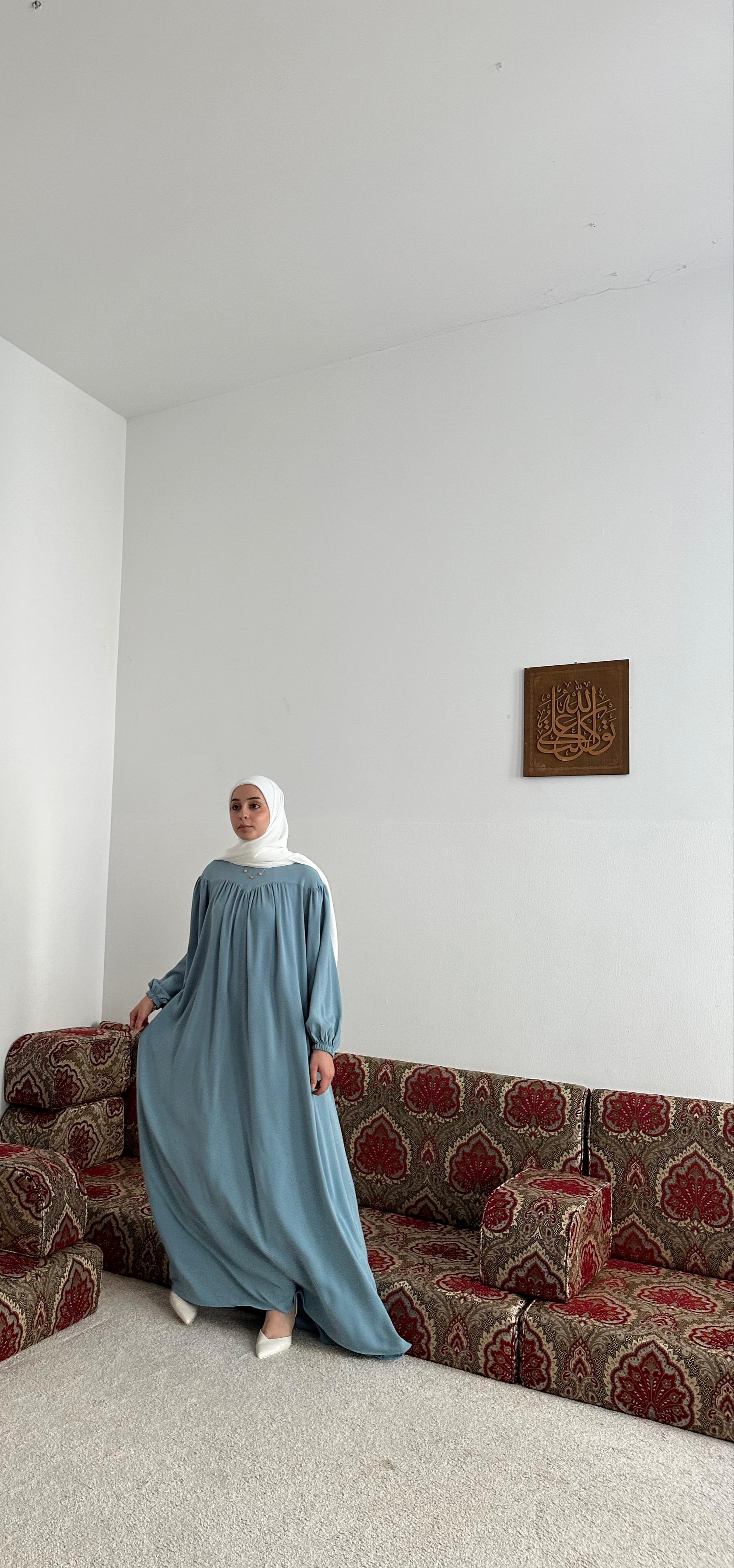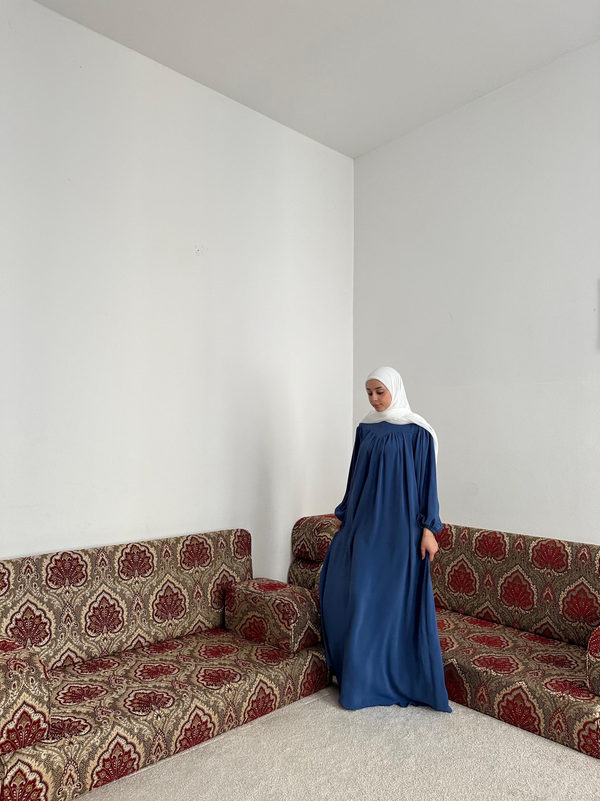Farbenfroh und strahlend - das ist unsere Abaya spring. Sie besteht aus hochwertiger Medina-Seide, hat ein gesäumtes Muster am Dekoltè-Bereich und Gummizüge am Ärmel. Sie ist außerdem blickdicht, weswegen man sie an heißen Sommertagen auch ohne Unterhemd oder Ähnliches tragen kann. Man kann die Abaya nach belieben mit oder ohne Gürtel tragen.