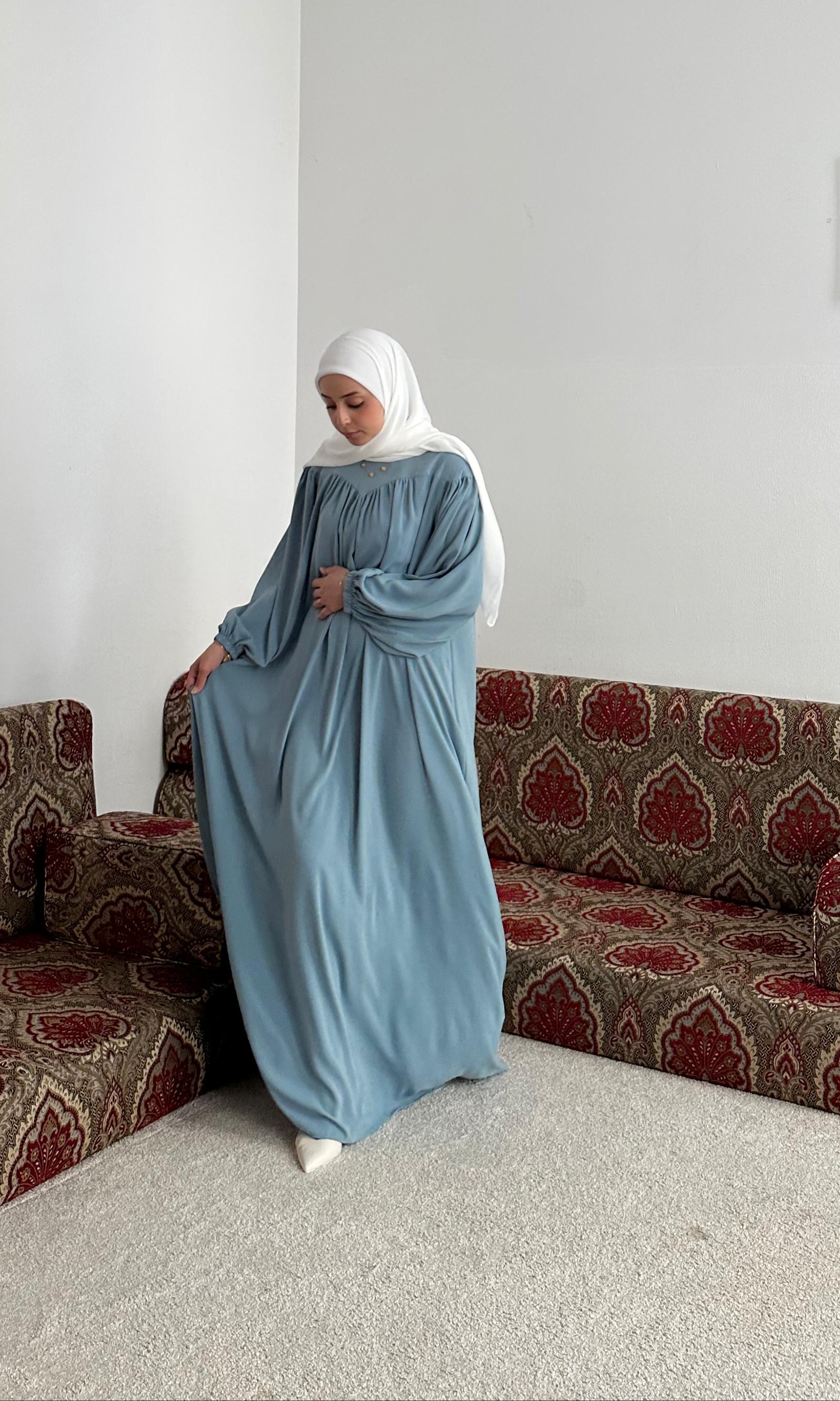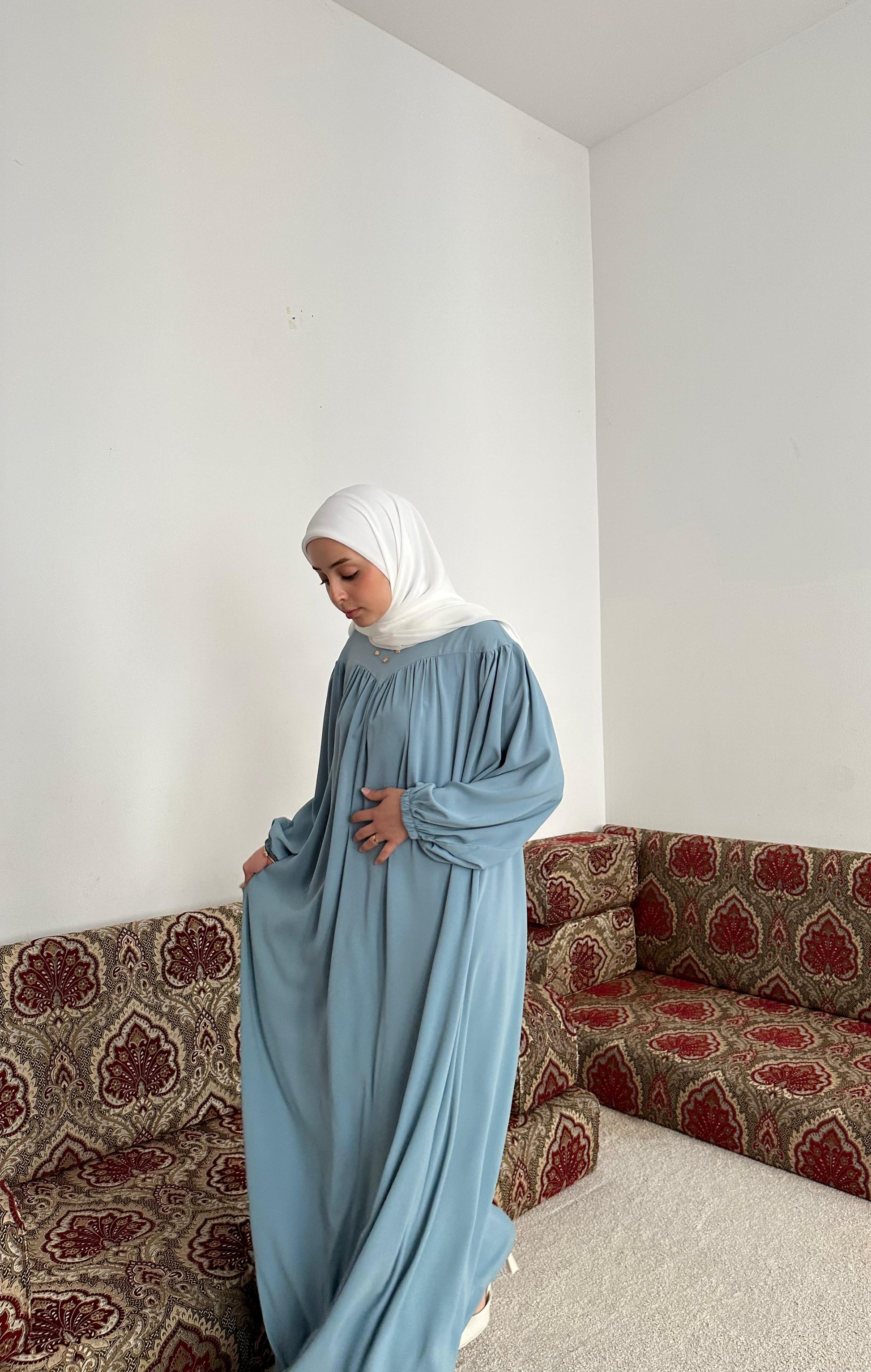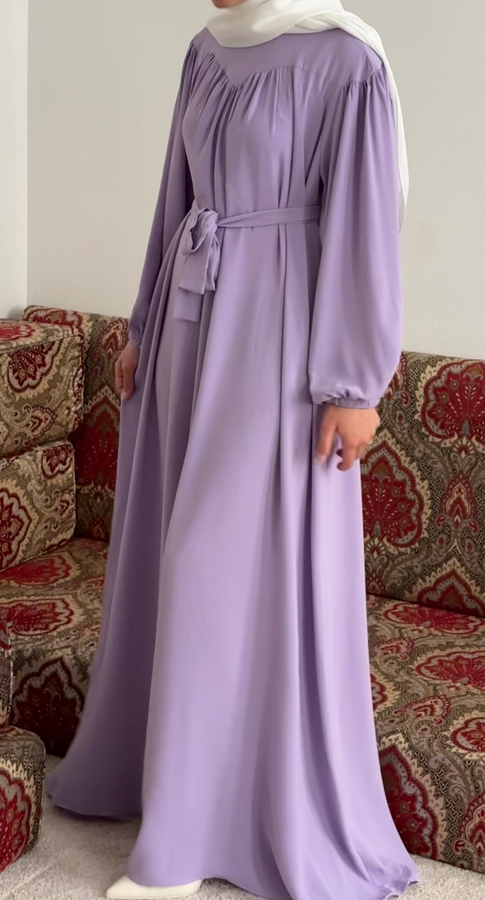 Farbenfroh und strahlend - das ist unsere Abaya spring. Sie besteht aus hochwertiger Medina-Seide, hat ein gesäumtes Muster am Dekoltè-Bereich und Gummizüge am Ärmel. Sie ist außerdem blickdicht, weswegen man sie an heißen Sommertagen auch ohne Unterhemd oder Ähnliches tragen kann. Man kann die Abaya nach belieben mit oder ohne Gürtel tragen.