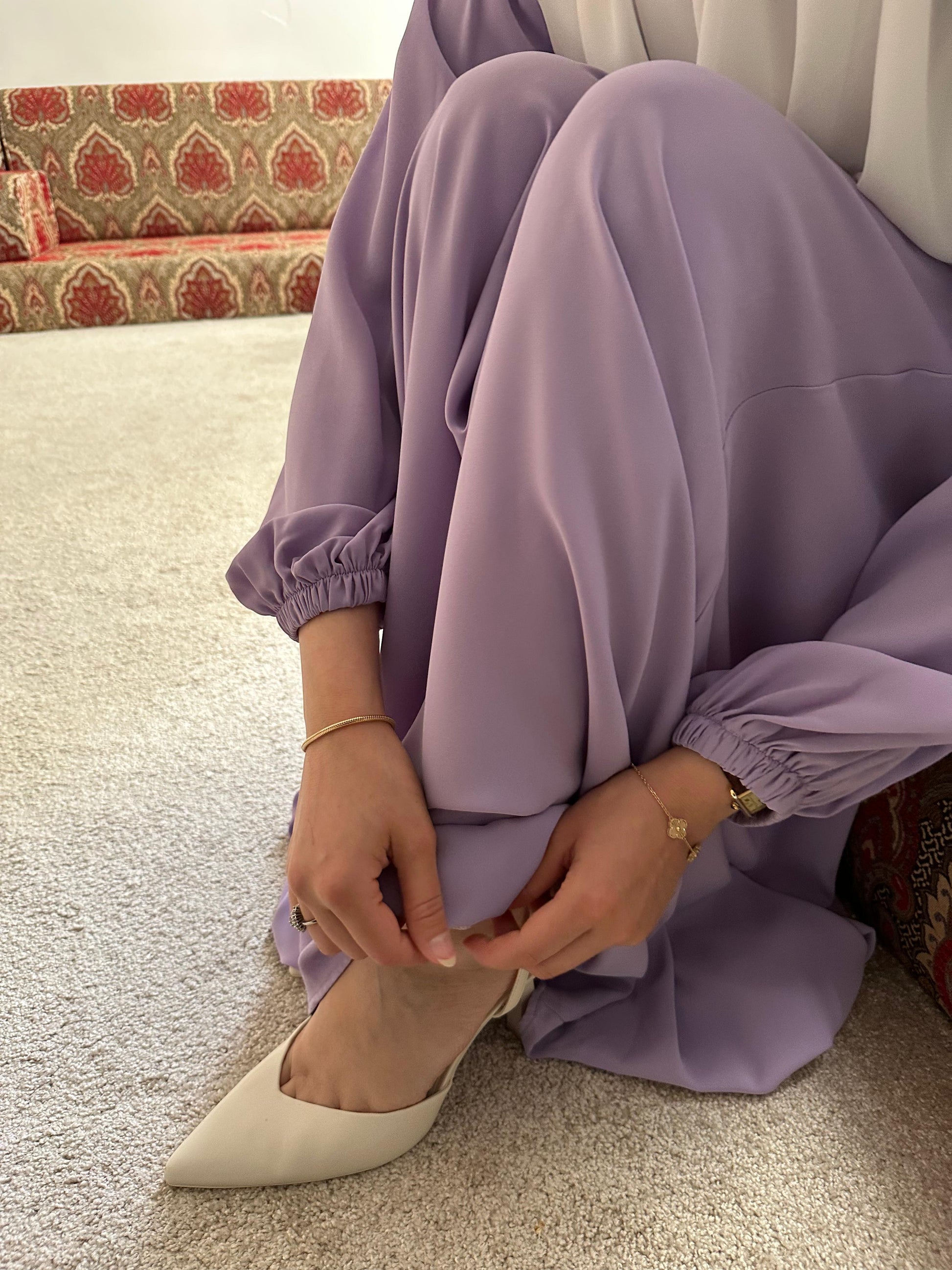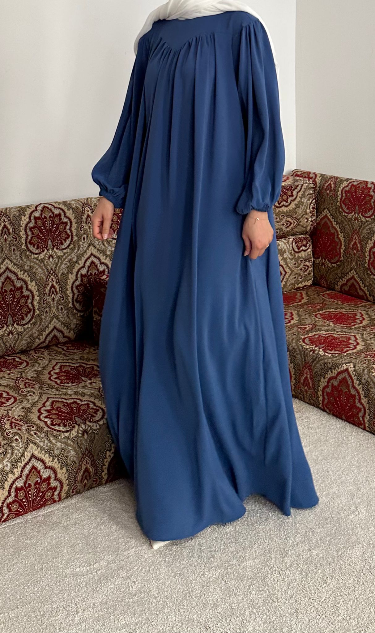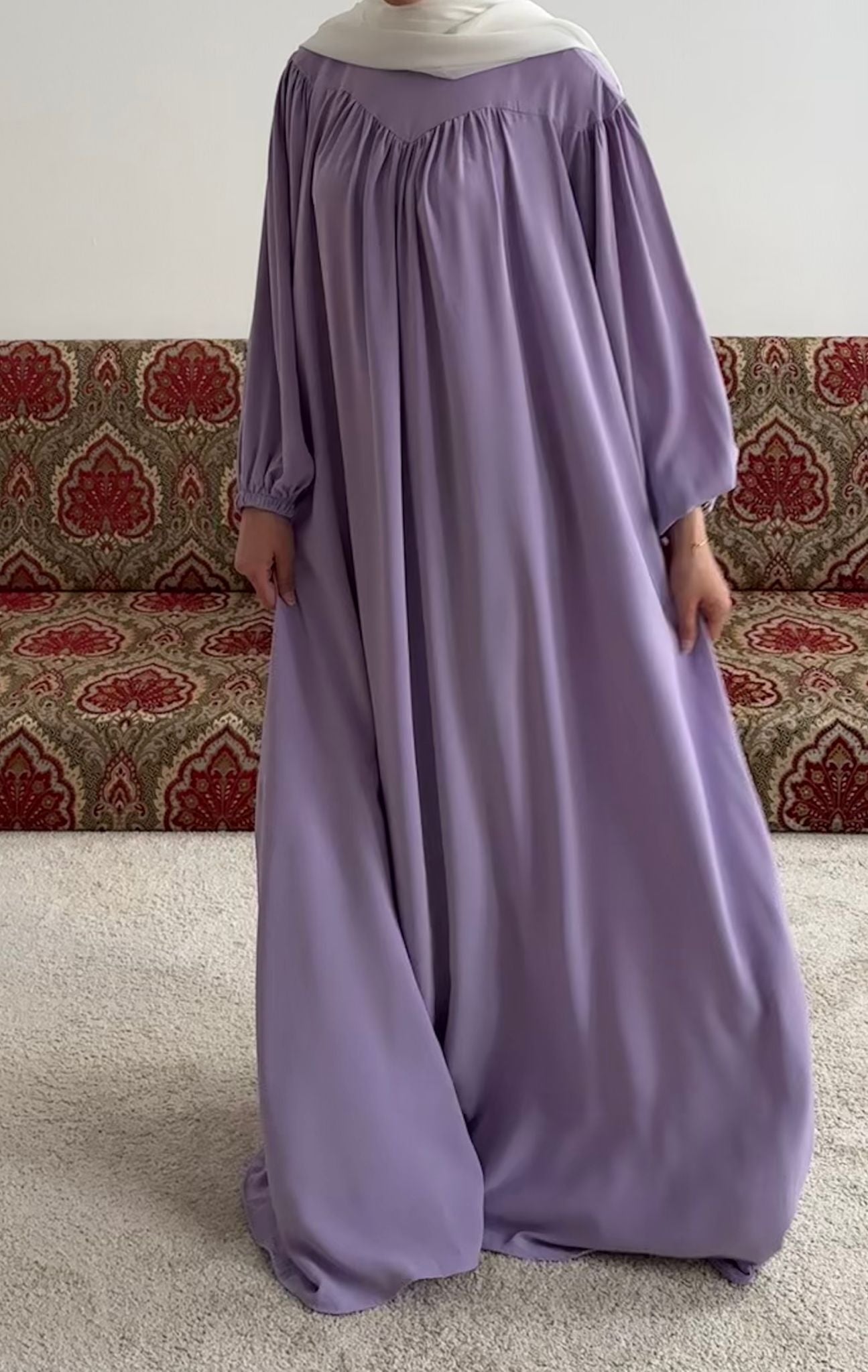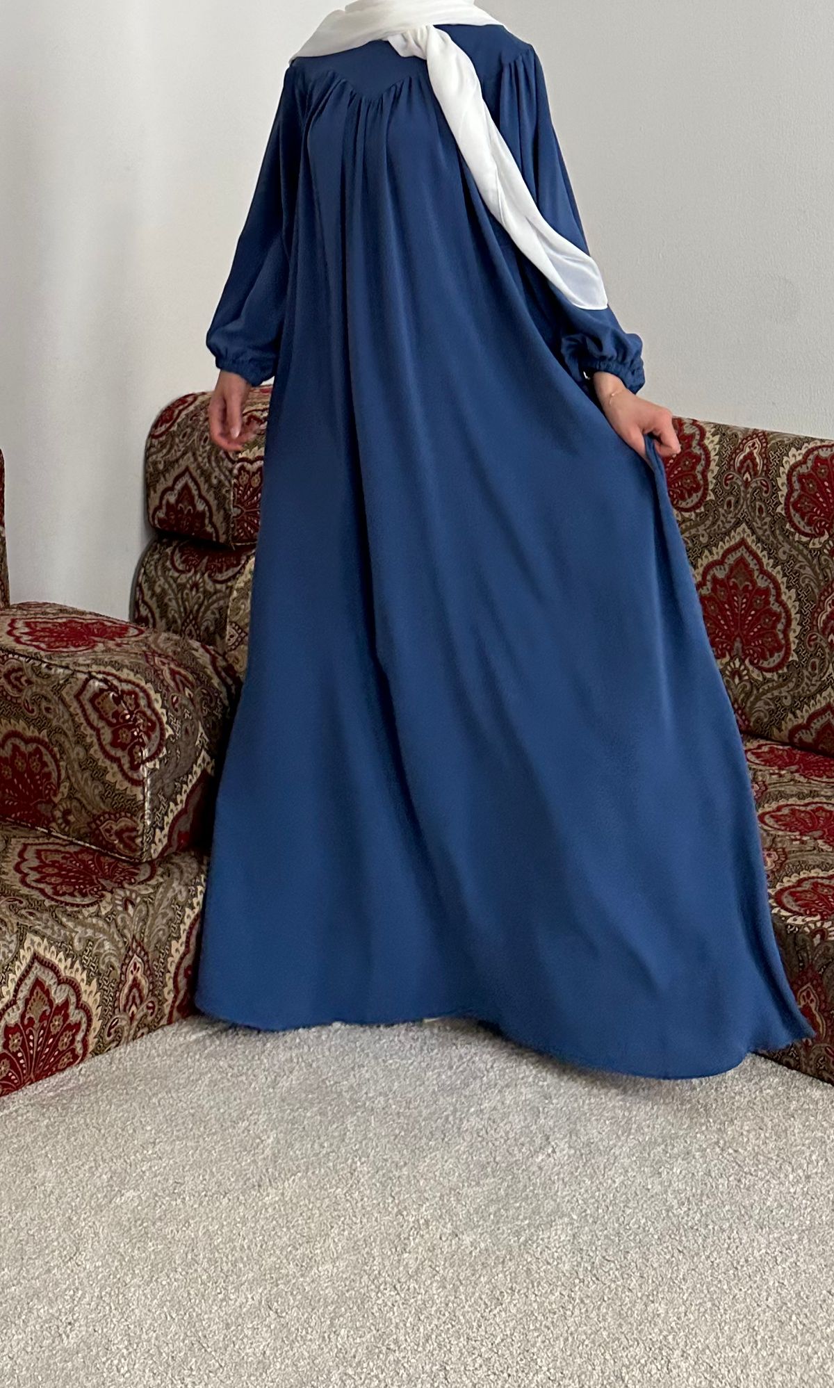 Farbenfroh und strahlend - das ist unsere Abaya spring. Sie besteht aus hochwertiger Medina-Seide, hat ein gesäumtes Muster am Dekoltè-Bereich und Gummizüge am Ärmel. Sie ist außerdem blickdicht, weswegen man sie an heißen Sommertagen auch ohne Unterhemd oder Ähnliches tragen kann. Man kann die Abaya nach belieben mit oder ohne Gürtel tragen.